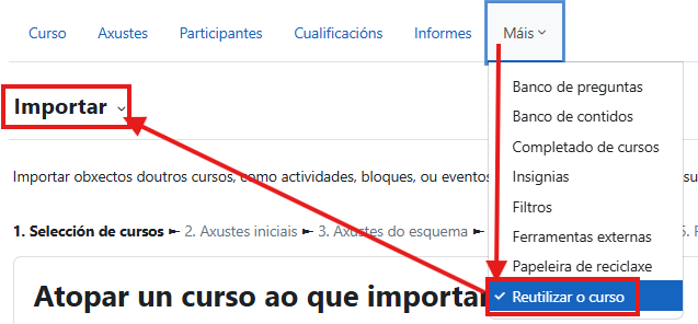 - Unha vez dentro, preme na pestana «máis» e selecciona «Reutilizar o curso».
