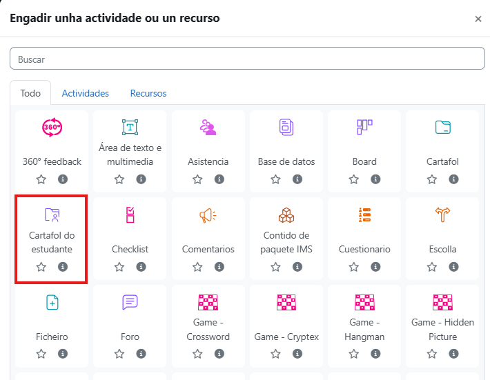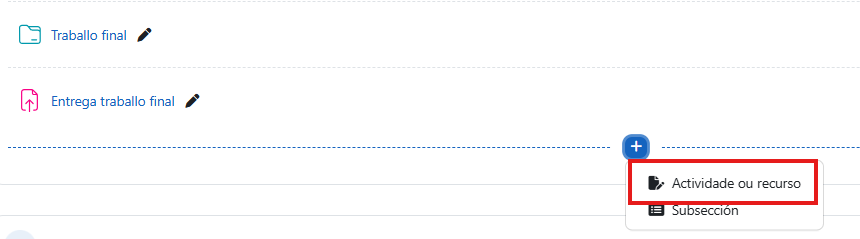 - Na sección correspondente, preme en engadir unha actividade ou recurso:
