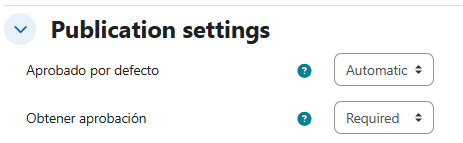 - Aprobado por defecto: se escolles requerido, os ficheiros só se publican despois da aprobación do profesor/a. Se escolles automático os ficheiros son visibles para todos/as de inmediato.