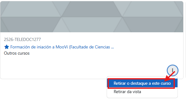 Se precisas deixar de destacar ese curso, preme nos tres punto e escolle "Retirar o destaque a este curso":